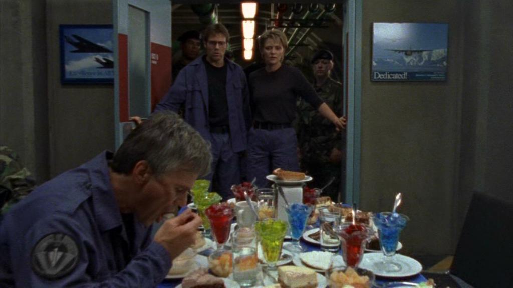Lorne’s hand joined behind his back with Kenmore’s gently moves his thumb back and forth over his friend’s fatty part of her hand just between her thumb and index finger. Sheppard watches Lorne’s shoulder joint suddenly yank back sharply and he knows whatever comfort the Major had just tried to provide to his friend had been completely and utterly rejected. Yep, wounds rawer and deeper…she’s taken herself away from her friend. Quietly and stone faced, Kenmore heads after Ganos Lal into the room.
